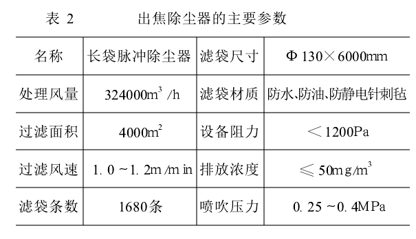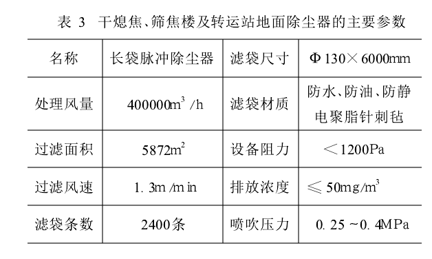 表3干熄焦、篩焦樓及轉運站地而除塵器的主要參數