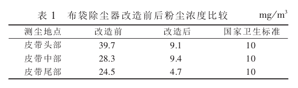該套除塵系統(tǒng)2001-09,在新廠6號皮帶尾部安裝并投入運行,除塵效果顯著,粉塵濃度明顯下降,經包頭市技術監(jiān)督局現(xiàn)場測試_符合_標準。測試數(shù)據見表1。