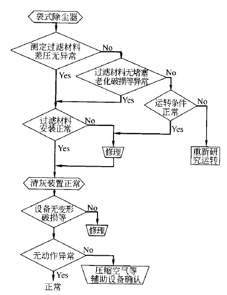 布袋除塵器的維護管理對確保除塵器的穩定運行,達到預期的除塵效果具有重要意義。布袋除塵器檢修流程如圖所示。