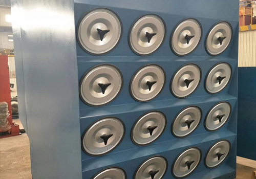 濾筒在除塵器中的布置很重要,既可以垂直布置在箱體花板上,也可以傾斜布置 在花板上,從清灰效果看,垂直布置較為合理。花板下部為過濾室,上部為氣箱脈沖室。在除塵器入口處裝有氣流分布板。上面一排濾筒會首先脈沖反吹,然后控制儀選擇下一排重復(fù)脈沖反吹過程。此后此控制儀會順序繼續(xù)選擇其他濾筒進(jìn)行脈沖反吹操作。采用濾筒斜裝結(jié)構(gòu),因而除塵器在工作過程中同步清灰效果好。.濾筒傾斜抽屜式安裝,可使濾筒拆換更方便,而且除塵器本內(nèi)部不設(shè)置傳動部件。對一般性粉塵,濾筒可長期使用不需要更換,省去了常用袋式除塵器需經(jīng)常換洗濾袋的繁瑣工作,并節(jié)省了大量的維修費(fèi).應(yīng)用于水泥、鋼鐵、電力、食品、冶金、化工等工業(yè)領(lǐng)域,整體容量增加數(shù)倍,是解決傳統(tǒng)除塵器對細(xì)粉塵收集難、過濾風(fēng)速高、清灰效果差、濾袋易磨損破漏的問題。