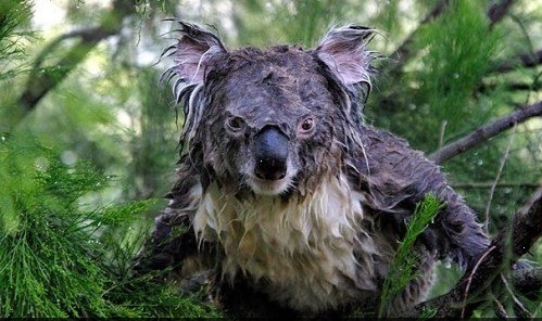 小考拉本來正愜意地在澳大利亞沐浴著陽光,不覺睡意上涌,就掛在樹上睡了過去。突然,一陣大水洶涌而來,小考拉不幸在夢中“中招”,被淋了個“透心涼”。但見,它端坐起來,平日可愛的表情已經換成了“兇相”。