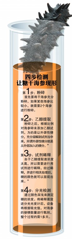 近日,央視關于青島干海參市場混亂的問題進行了深度報道,報道播出之后,青島市民對自己日常買的干海參產生了懷疑——“我非常信任的補品干海參真的含糖嗎?”為了幫助市民解答這個疑問,記者取得了30余份市民送來的樣品,在專家的協助下,我們抽取了其中13份具有代表性的干海參作為樣本,委托青島一家國家級的水產研究所進行了檢測。結果讓人震驚,一份被送來的福興長島海參的糖含量,竟然達到了41.6g/ 100g。這也就意味著,市民購買的一斤海參中,只有半斤多點海參,其余的都是糖。 專家指出,有些檢測當中只發現少量糖摻入的干海參同樣存在問題,“這些海參來自熱帶海域,由于生長期非常短,營養價值很小”。 干海參含糖量竟達41.6g/100g 近日,記者從市民當中收取了30多份干海參樣品,為了讓市民了解到他們手中的海參到底有沒有被摻入糖,記者聯系到了島城某國家級的水產研究所。考慮到某些海參類別相同,我們挑了其中13個具有代表性的樣品,作為樣本檢測。 4月16日,記者從科研人員手中接到了一份檢測結果,在記者送檢的13個樣本當中,大多數都存在較多的含糖量。其中,市民張女士提供的,從福興長島海參購買的海參的含糖量竟然達到了41.6g/100g。 這也就意味著,在市民張女士購買的1斤海參當中,有4兩多是糖,只有半斤多是干海參。 “竟然含有這么多糖?”聽到記者告訴她的數據后,張女士甚至開始懷疑自己的耳朵,“我購買的時候,銷售人員告訴我說,他們的海參都是優質的干海參,不含糖。” 張女士說,她購買的海參價格是2760元/斤。“按照這個價格算下來,我花了這么多錢買到的,還不到6兩干海參。”同時,張女士還折算了一下,如果把糖取出,她購買的海參價格得四千多元一斤,“可是,我家里有糖尿病人,讓家人吃這么多糖,這不是害人嗎?”說到這里,張女士有些氣憤,她原本認為吃海參是為了補身體的,沒想到,因為糖含量太高,起到了反作用。 |