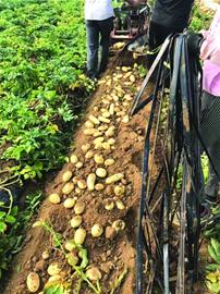 膠州馬鈴薯出口量占到青島市出口總量的80%,為提高產品的質量和產量,實現馬鈴薯全年供應,增強國際市場競爭力,攻關區更加注重綠色技術引領,積極開展前瞻性技術試驗與協同攻關。在膠西鎮核心示范區,試驗示范了早春設施栽培、春季平膜覆蓋、秋季簡化栽培等多種馬鈴薯新型種植模式,集成了以“新品種+黑白標準地膜+中拱棚+配方施肥+水肥一體化+全程機械化+無人機綠色防控+科學收獲儲藏+地膜回收”的一整套新技術模式,試驗效果突出,技術引領作用大。 市農機中心工作人員介紹,示范種植的新型加工型品種麥肯1號,具有產量高、薯形整齊的特點,適合大型機械作業,畝產超過4000公斤,減少了產品分級作業,勞動成本大大降低,成為繼鮮食品種荷蘭15之后又一個主導新品種,有效解決了長期種植品種結構單一問題。針對水肥精準使用問題,攻關區試驗示范了膜下滴灌水肥一體全程機械化種植模式;針對植保作業費工費力問題,示范展示了規模化植保無人機病蟲害統防統治作業模式;為對比不同地膜對防草效果、地溫變化、促進薯塊膨大效果等影響,篩選出了黑白相間地膜覆蓋技術,且通過改進收獲機械,集成了“機械收獲+地膜回收”同步進行作業模式,實現了地膜全回收、零污染;為適應不同茬口并保持馬鈴薯持續供應,集成示范了“馬鈴薯—玉米”、“馬鈴薯—大蔥”、“馬鈴薯—大白菜”等新型輪作制度,引導綠色可持續發展。