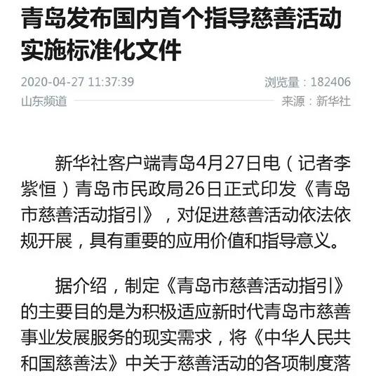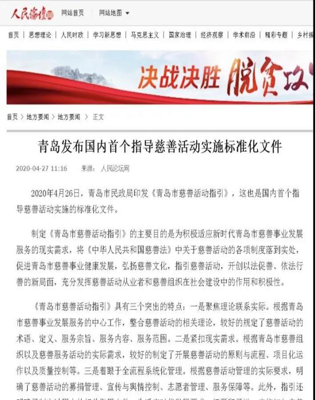 該《指引》的出臺得到了新華社、人民日報海外網、人民論壇網、 CCTV公益之聲官網、國家民政部官網、中國民政微信公眾號、光明網、齊魯網等 30余家媒體和網站的關注宣傳,對推動我市慈善工作起到了積極作用。