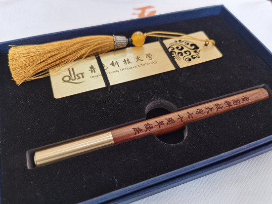 青島新聞網6月21日訊(記者 張力偉)19日,青島科技大學校長陳克正收到了一份來自2020屆藝術學院畢業生韓宇的特殊紀念品。韓宇將自創的青科大70周年校慶主題作品捐贈給學校,表達對母校培養的真摯感謝和70周年校慶的深情祝福。