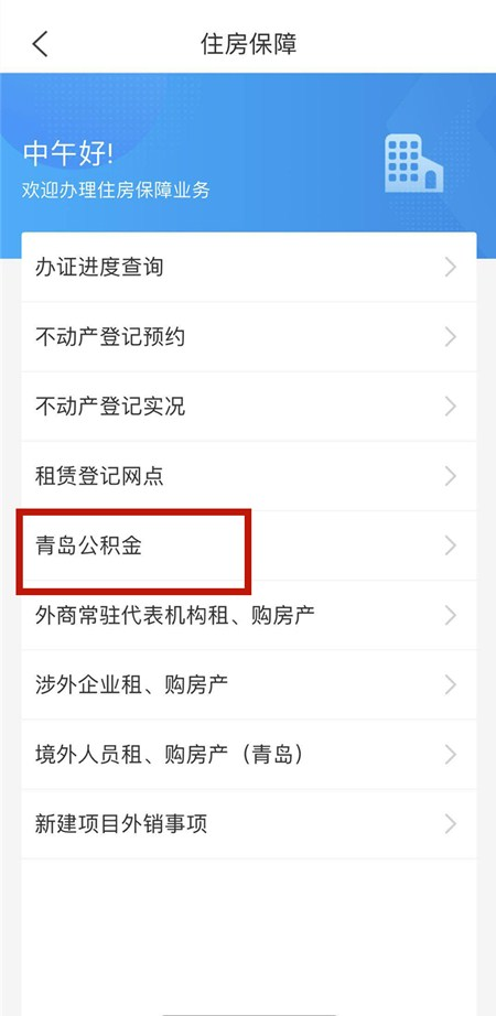 第二步,在“住房保障”業務詳情頁點擊“青島公積金”,即可進入公積金業務辦理詳情頁面開始辦理。