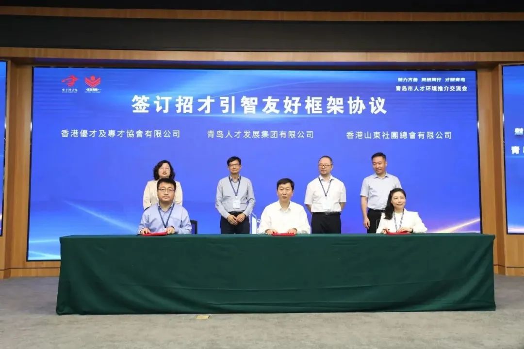 活動現場,青島人才發展集團與香港山東社團總會、香港優才及專才協會簽定《招才引智友好框架協議》,三方將以此為契機,助力青島、香港在產學研轉化、人才交流、人才引育等領域開展深度合作,真正激活人才“一池春水”,助力青島打造新時代人才“引育用留”新高地,推動青港兩地融合互補高質量發展。