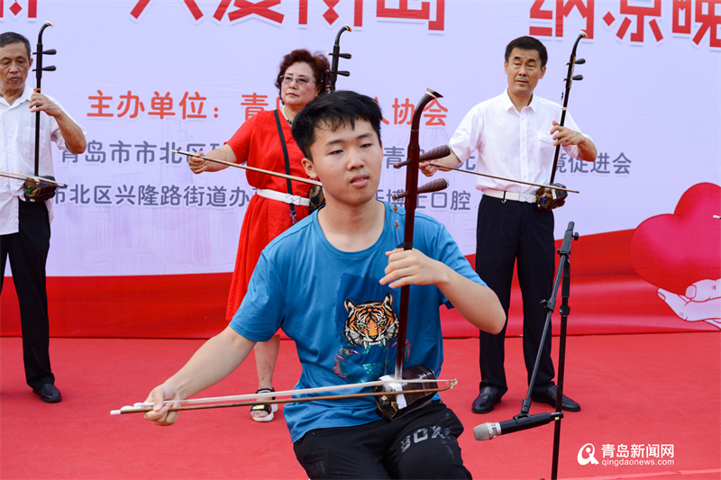 伴隨著歡快的鼓點,晚會在非洲鼓表演《好日子》中拉開序幕,歌曲、舞蹈、曲藝、器樂演奏等等豐富多彩的節目讓臺下的觀眾仿佛忘記了夏日炎熱。其中,二胡齊奏《青島》,表達了對島城的熱愛之情,讓在場的觀眾沉浸其中,深受感染;藏族舞《次真拉姆》,用舞蹈的形式祝福偉大祖國,謳歌紅色經典,展現新時代風貌;評書《月唐演義》引得大家連連叫好;《美麗的心情》、《我的九寨》《聽聞遠方有你》《我愛你塞北的雪》《爸爸的話》《花橋流水》《紅塵情歌》等歌唱節目,以及二胡獨奏《戰馬奔騰》、口琴獨奏《站在草原望北京》等節目,也得到了觀眾陣陣掌聲;歌舞《中國龍》將整場晚會推向了高潮;隨著《我和我的祖國》的音樂響起,晚會在演員們的齊聲合唱中落下帷幕。