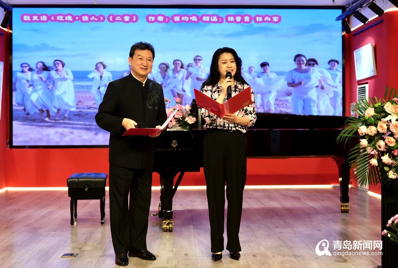 在朗誦環節,多位嘉賓傾情演繹了精彩的散文詩等詩歌作品。知名詩人崔均鳴、黎權和玫瑰聯盟女詩人鄭海平、高艷艷也為此創作了詩歌,由青島著名朗誦家張晉青、任向軍、高云華出場朗誦。“我要張開雙臂,深深地擁抱自己”“我穿過這熱鬧非凡的人間煙火,呼喊你;我走遍這熙來攘往的城市大街,尋找你。”《玫瑰?佳人》《我們》《我要張開雙臂》等詩歌作品展示了女性面對健康問題時的自強以及得到的社會關愛。