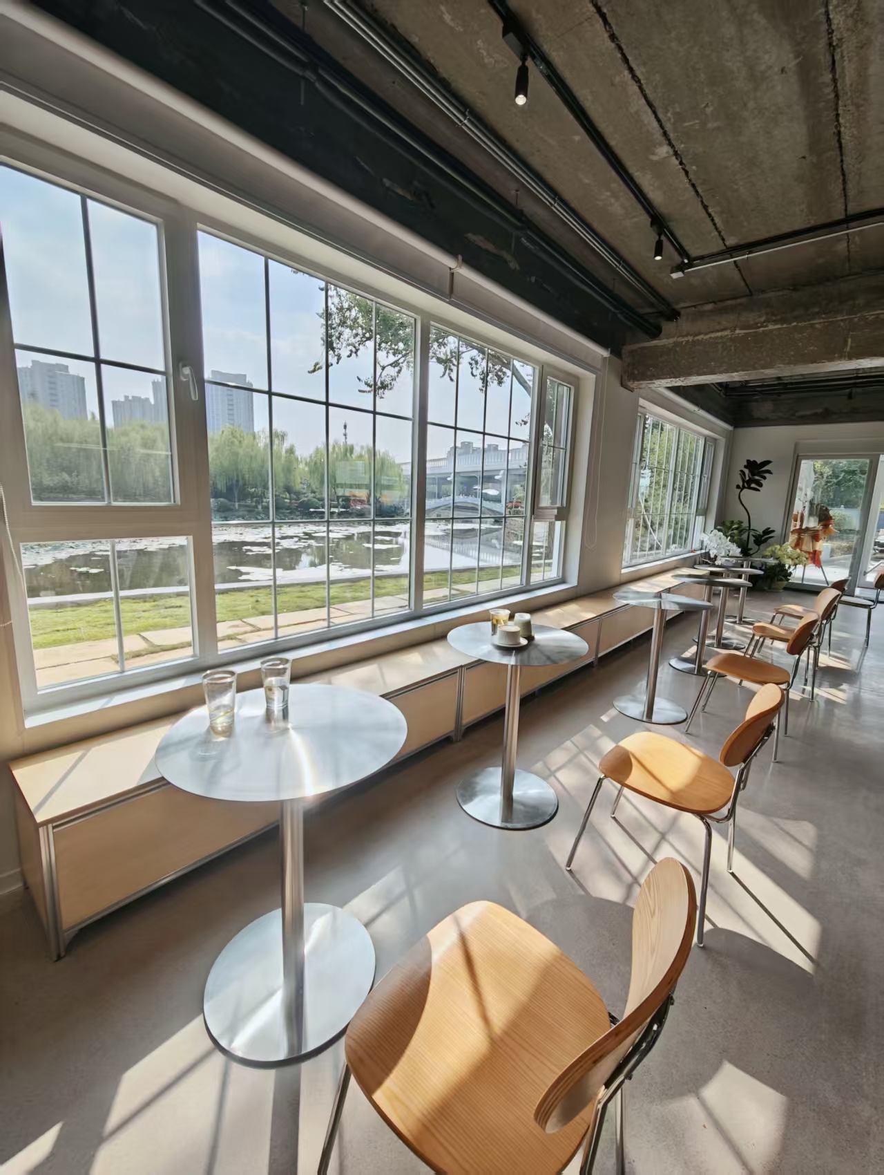 一樓一進(jìn)門就是溫馨的咖啡店,旁邊是超美的湖景,點(diǎn)一杯香濃的咖啡,坐在無遮擋的窗戶旁,陽光透過窗戶灑在身上,眼前的湖景如同一幅美麗的畫卷。