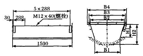 特制的雙層護煤槽封閉碎煤機落煤管出口的正壓粉塵氣流,用風機抽氣,使護煤槽內產(chǎn)生負壓,防止粉塵逸出。同時輔以多級旋流濕式除塵器進行除塵。雙層導料槽結構及外形尺寸(按35。槽角)如圖2a