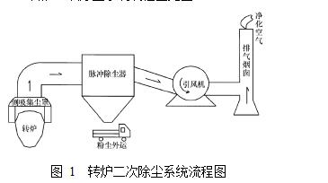 轉(zhuǎn)爐二次除塵系統(tǒng)流程圖見圖 1 。