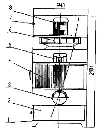 1.箱體;2.盛粉塵抽屜;3.粉塵吸入口;4.粉塵過濾布袋;5.振蕩機構;6.風機;7.電控系統;8.主電機