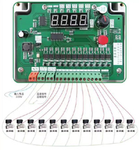 4、各輸出端輸出控制電磁脈沖閥的開啟,噴吹壓縮空氣清灰,同時有發(fā)光二_管顯示噴吹順序。除塵器清灰時,一邊過濾一邊噴吹清灰,脈沖控制儀按設(shè)定的脈沖寬度和脈沖間隔輸出電信號控制脈沖閥逐個噴吹清灰。